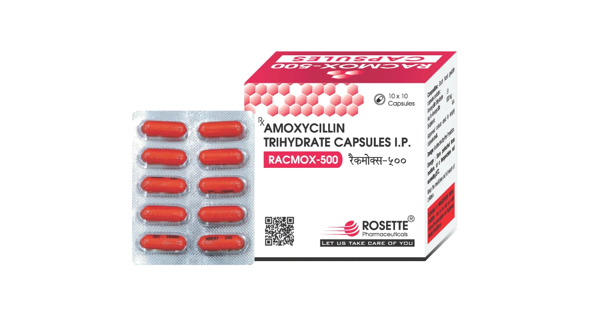 Racmox 500 Capsule contains Amoxycillin 500mg, a broad-spectrum antibiotic used to help manage bacterial infections affecting the respiratory tract, urinary tract, skin, soft tissues, and ear infections. It works by killing bacteria and stopping their growth, ensuring fast recovery from infections.