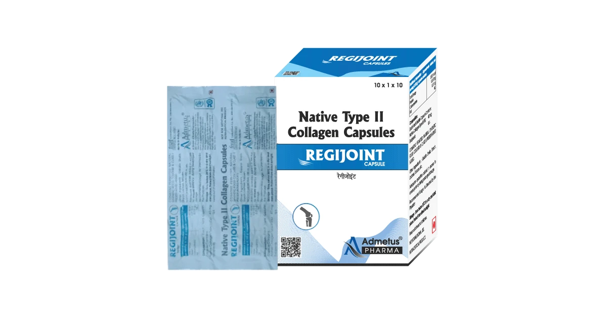 Regijoint Capsule contains Collagen Type II (4%) 40mg, a well-balanced formulation designed to support joint health and mobility under medical supervision. The capsule form ensures ease of administration and controlled dosage.