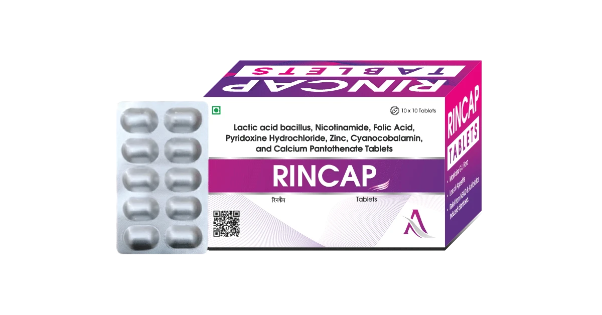 Rincap Tablet contains Lactic Acid Bacillus, Zinc, and essential vitamins to support digestive balance, energy metabolism, and overall well-being.