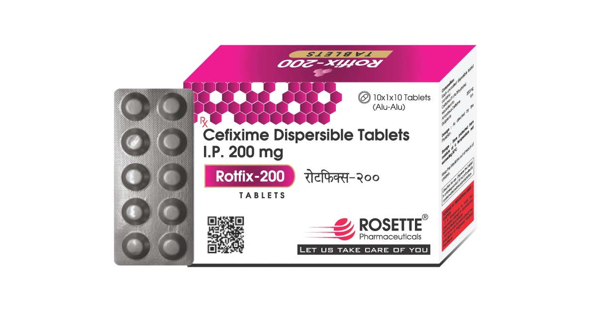 Rotfix 200 Tablet contains Cefixime 200mg, a widely used cephalosporin antibiotic that is effective against a broad range of bacterial infections. It is commonly prescribed for infections of the lungs, throat, urinary tract, skin, and ears. Its long-acting formula ensures better bacterial control with fewer doses. Always follow your doctor’s advice for the best results.