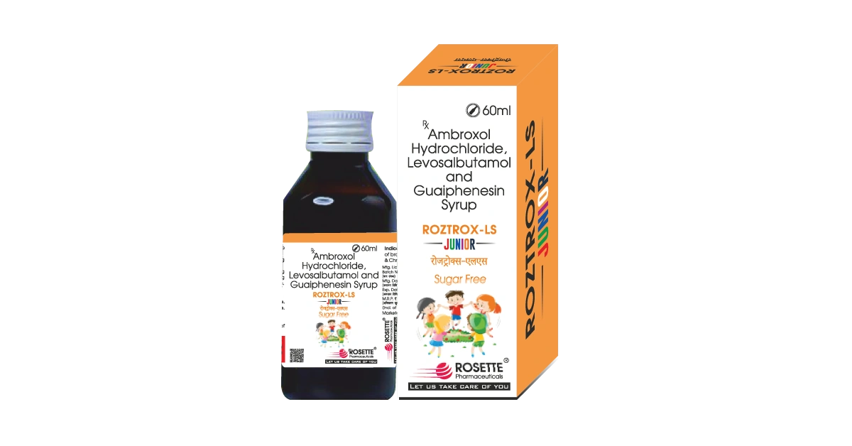 Roztrox LS Junior is a carefully formulated sugar-free syrup containing Levosalbutamol 0.5mg, Guaiphenesin 50mg, and Ambroxol Hydrochloride 15mg, designed for easy consumption under medical supervision. The balanced formulation supports overall wellness while maintaining a sugar-free composition for convenience.