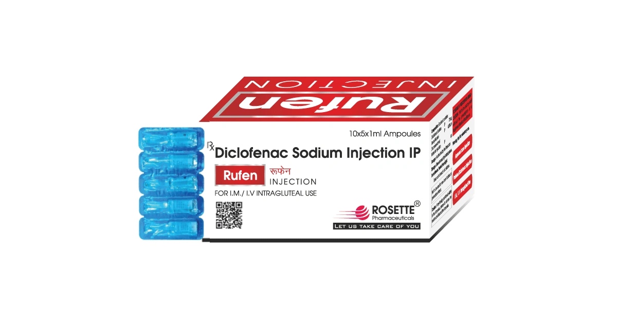 Rufen 1ml Injection contains Diclofenac Sodium 75mg, a well-balanced formulation designed to support joint and muscle comfort under medical supervision. The injectable formulation ensures quick absorption and targeted administration.